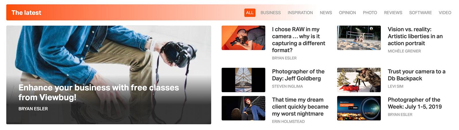 Below that, you’ll see a section called The Latest. This presents all of our recent stories on Photofocus, and additionally lets you filter into a few select categories. If you’re looking for the latest and greatest, definitely check out this section.